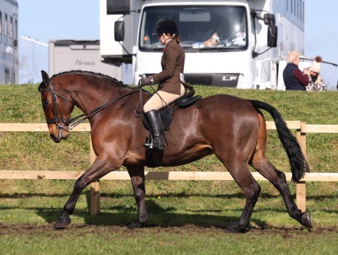 Lois Dickie and Meniecroft Red Rose qualified at NPS Scotland Spring Show for The NPS/Baileys Horse Feeds 122cms M&M Working ...